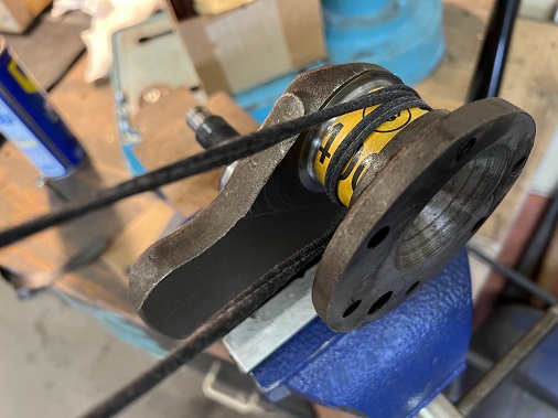 On this two-piece Norton 850 crankshaft, I secured it in soft jaw pads in my workbench vise.