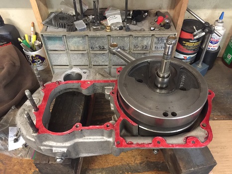 With the flywheel assembly installed back into the left engine case, prop it up on blocks of wood.